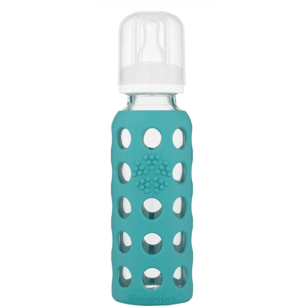 temperaturbeständige Borosilikatglas der Lifefactory Glas-Babyflaschen - Ein abnehmbarer Überzug aus Silikon schützt das Glas vor Zerbrechen und